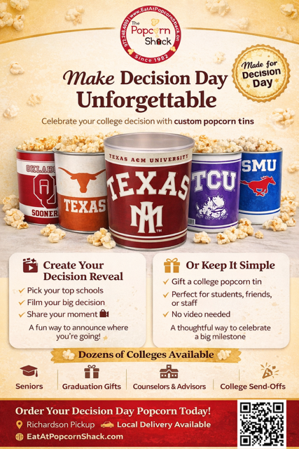 Since 1982 people from all over Texas have come into our store and said, “This is the best popcorn in Dallas!” Come in and try for yourself. We believe popcorn is a special food, perfect for gathering and giving. We want our popcorn to fill bowls around which friends and family can gather for a birthday, a holiday meal, or just a movie night. And, popcorn is a perfect gift, whether in a corporate setting or the most tender moments at home. It can help encourage another, welcome someone home, or share a message of love. Whether treating yourself, giving to others, or gathering friends or family around a bowl, use your imagination to create a special moment. Make it more than a snack or desert, make it magic with popcorn from The Popcorn Shack!
